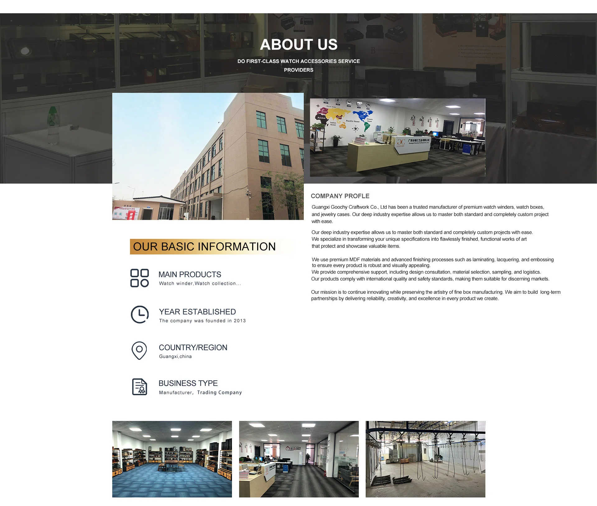 Principaux produits : Remontoir de montre, boîtier de collection de montres, boîte de montre, boîtier de montre de voyage